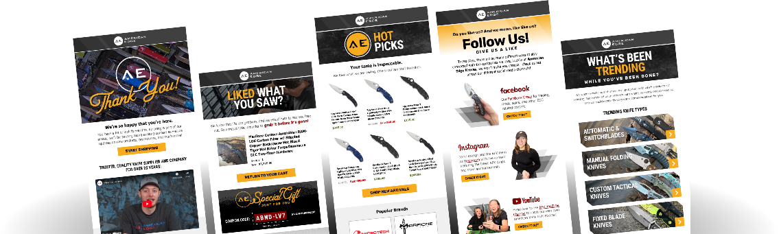 By reimagining key email flows with personalization and strategy, EYStudios helped American End Knives transform customer engagement into lasting loyalty while driving significant improvements in conversions and overall business growth.